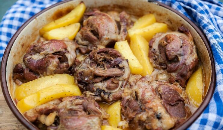 При выборе мяса для нашего блюда, обратите внимание на его цвет и текстуру. Выбирайте розовое мясо с небольшими жировыми прожилками, так как оно обеспечит лучший вкус и сочность. Картофель должен быть твердым на ощупь и иметь гладкую кожуру, без признаков гнили или повреждений.