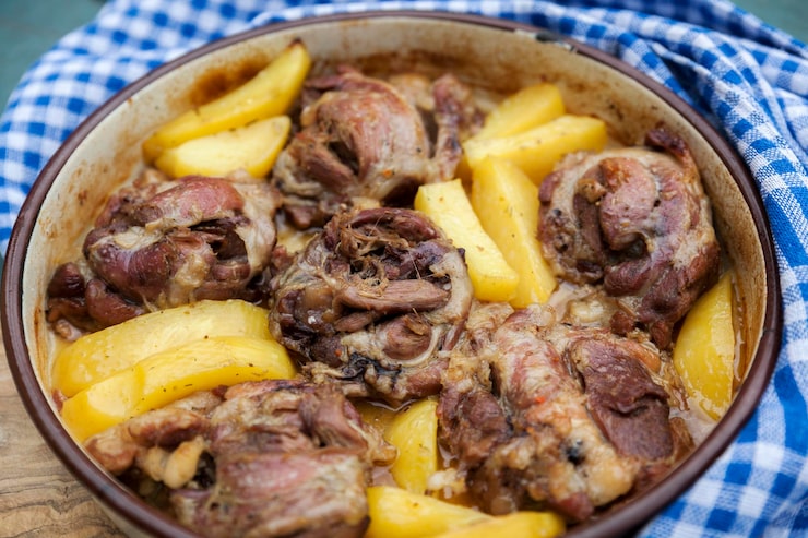 Теперь, что касается картофеля. Для этого рецепта лучше всего подойдет картофель с плотной текстурой, такой как картофель Юкон Gold или картофель Рэд Скин. Чтобы придать картофелю дополнительный аромат, мы будем готовить его вместе с ребрышками в той же кастрюле. Просто добавьте нарезанный картофель в кастрюлю с ребрышками и тушите все вместе.