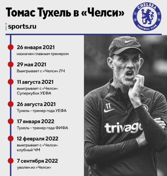 Тухеля назначили на пост главного тренера «Челси» в конце января 2021 года – тогда лондонцы барахтались на 9-й строчке АПЛ.
