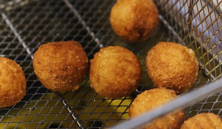 Теперь можно приступать к жарке. Разогрейте масло в глубокой сковороде или кастрюле до температуры около 180 градусов Цельсия. Осторожно поместите шарики в масло и жарьте до тех пор, пока они не станут золотисто-коричневыми.