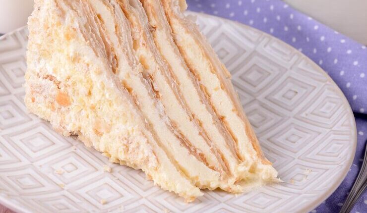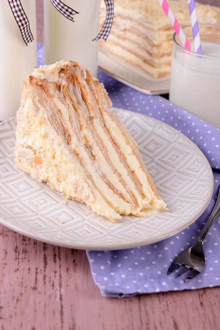 Теперь перейдем к крему. Заварной крем — это классический выбор для наполнения слоеного пирога. Для его приготовления вам понадобятся молоко, сахар, яйца, мука и ваниль. Важно медленно добавлять молоко в яичную смесь, чтобы предотвратить образование комочков. Также не забудьте постоянно помешивать крем во время приготовления, чтобы он не пригорел.
