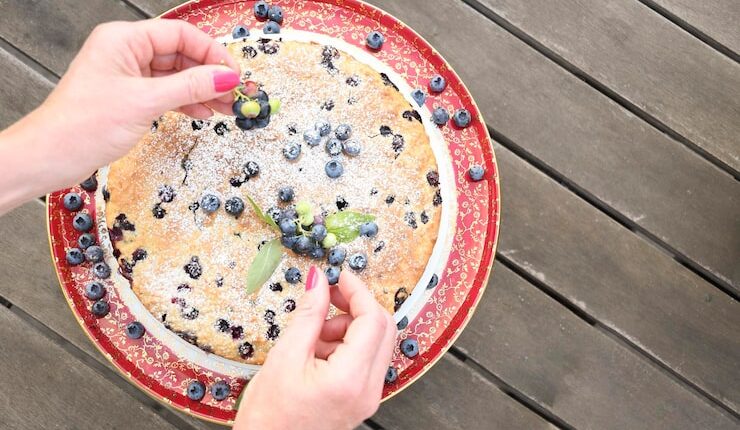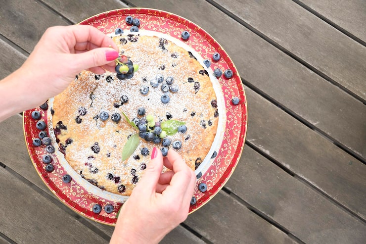 Поставьте форму для выпечки в предварительно разогретую до 180°C духовку и выпекайте в течение 35-40 минут или до тех пор, пока верхняя часть теста не станет золотисто-коричневой, а ягоды не начнут пузыриться по краям.