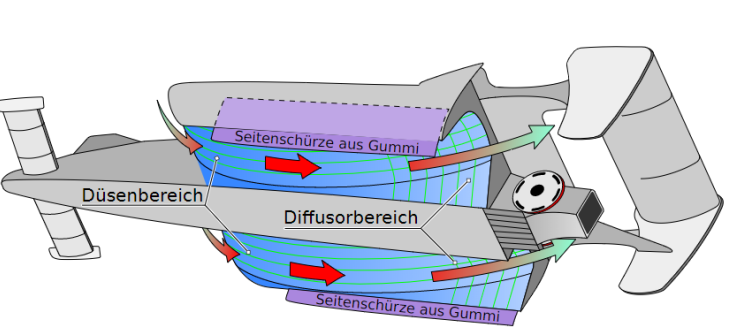 В «Формуле-1» с внедрением нового регламента под обгоны и упрощение преследования сильно изменилась философия разработки болидов – обвес в виде закрылков и антикрыльев стандартизировали и урезали, а взамен генерацию прижимной силы перенесли под днище. Вернулся граунд-эффект – «присасывание» болида к треку благодаря ускорению потока воздуха под диффузором за счет воссоздания зон с перепадами давления: