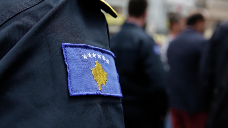 Нашивка с изображением герба самопровозглашенной Республики Косово на форме сотрудника полиции. Архивное фото