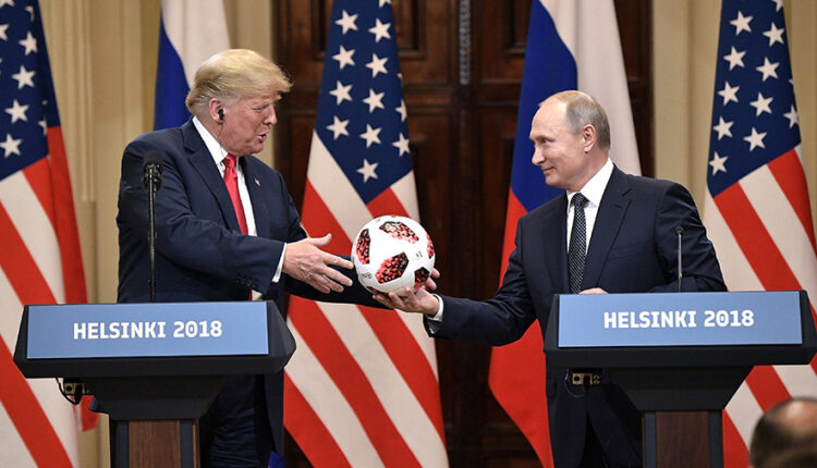 Во время совместной пресс-конференции лидеров в Хельсинки летом 2018 года Путин подарил Трампу официальный мяч чемпионата мира по футболу в России.