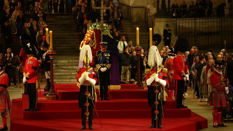 14 сентября началась траурная процессия, во время которой гроб с телом Елизаветы II доставили в Вестминстерский дворец, где проходит церемония публичного прощания с королевой. Она продлится до 06:30 (08:30 мск) 19 сентября.