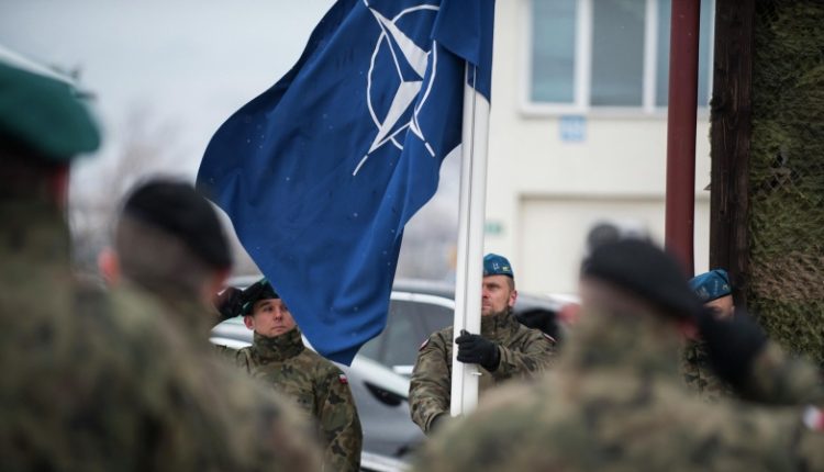 Польские военнослужащие поднимают флаг НАТО. Архивное фото