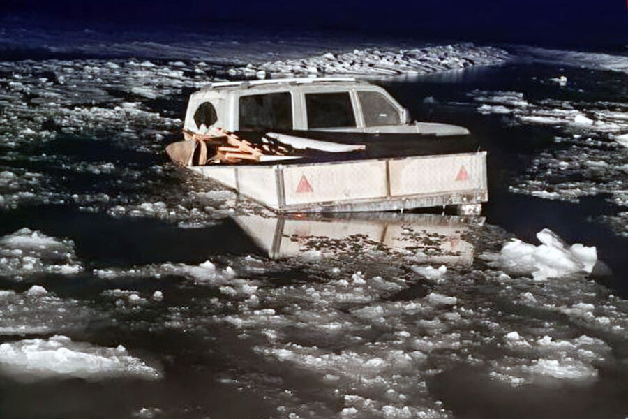 Второй случай произошел на переправе Булус. Водитель смог выйти из автомобиля до того, как он полностью ушел под воду.
