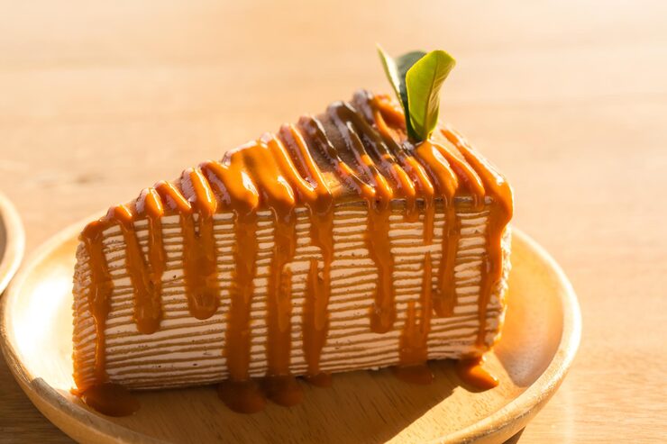 Соберите все вместе, положив кремовую начинку между двумя листами медовой корочки. Убедитесь, что крем равномерно распределен, чтобы каждый кусочек был одинаково вкусным. Затем разрежьте десерт на порционные кусочки и подавайте его своим близким и друзьям.