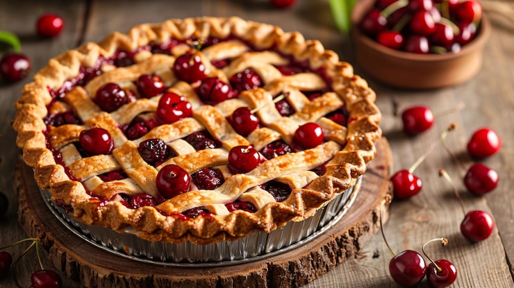 Для начинки нам понадобятся свежие вишни, сахар, крахмал и лимонный сок. Вишни нужно вымыть, удалить косточки и смешать с остальными ингредиентами. Затем начинку нужно выложить на готовое тесто и отправить пирог в духовку на несколько минут.