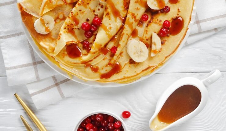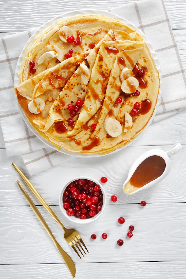Подавайте блинчики горячими со своими любимыми начинками, такими как мед, варенье, сметана или фрукты. Наслаждайтесь!
