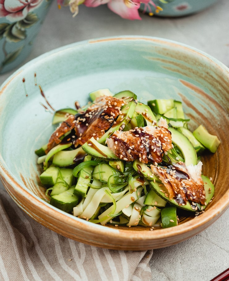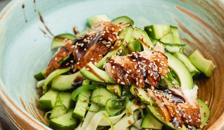 Начните с классического рецепта, добавив этот фрукт в салат из свежих овощей. Его мякоть идеально сочетается с хрустящими огурцами и перцем, а также с ароматным базиликом и чесноком. Для более насыщенного вкуса добавьте в салат немного орехов и сыра.