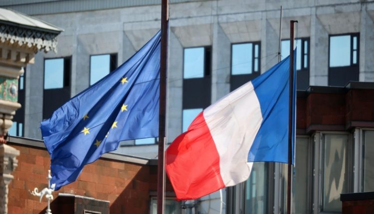 Флаги на территории посольства Франции в Москве. Архивное фото
