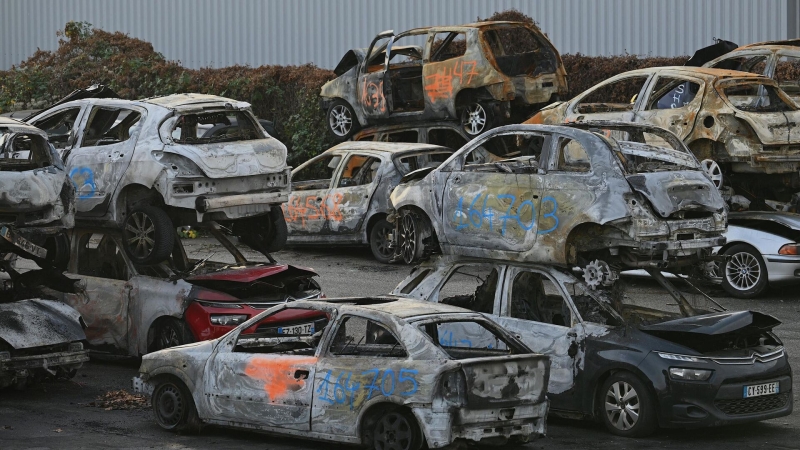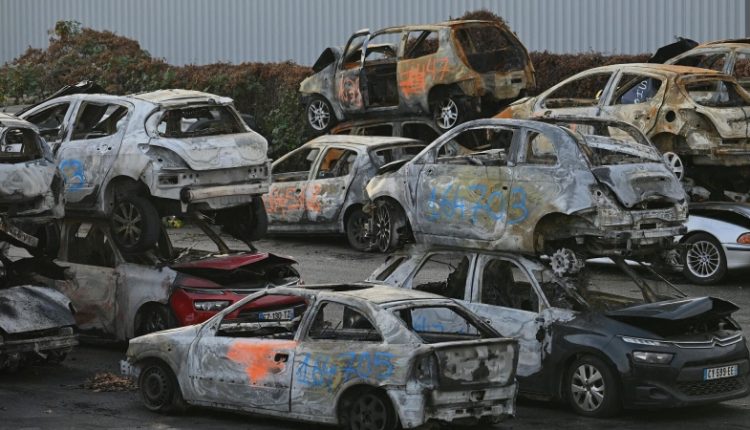 Автомобили, сожженные в новогоднюю ночь, на автомобильной свалке в Страсбурге, Франция. 1 января 2023
