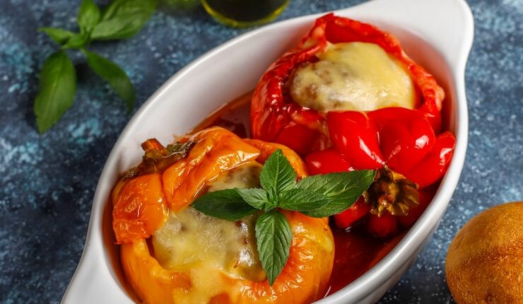 Другой способ — это запекание в духовке. Для этого поместите фаршированные перцы в форму для выпечки, добавьте немного воды на дно формы, накройте фольгой и запекайте в предварительно разогретой духовке при температуре 180 градусов в течение 45-60 минут.