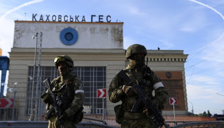 Военнослужащие РФ возле здания Каховской ГЭС. Архивное фото
