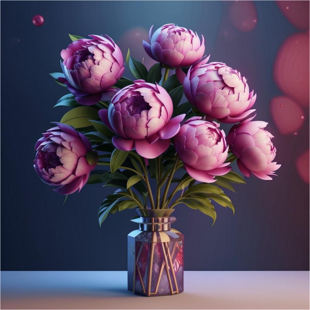 - Фиолетовые пионы – добавляют в композицию нотку загадочности и изысканности. Их насыщенные оттенки создают атмосферу роскоши.