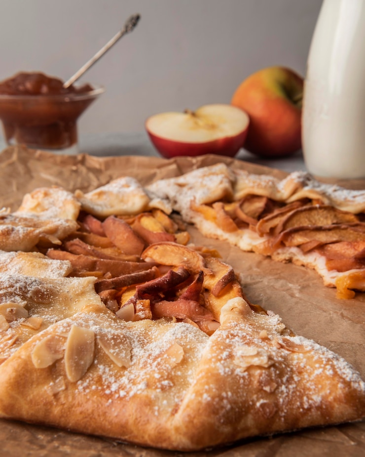 Начните с выбора свежих и сочных яблок для идеального вкуса. Мы рекомендуем использовать сорт «Голден Делишес» или «Фужи». Для теста возьмите готовое слоеное тесто, чтобы сэкономить время и усилия.