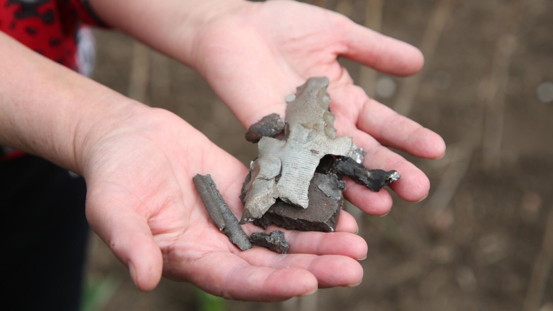 Осколки украинских снарядов крупного калибра в Донецке. Архивное фото