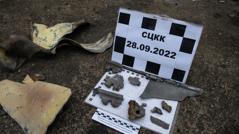Фрагменты от разорвавшихся снарядов после обстрела со стороны ВСУ. Архивное фото