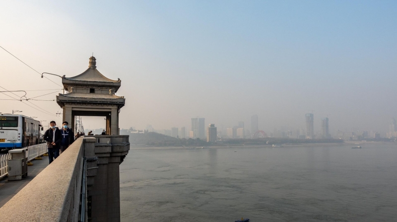 Люди идут по мосту в Ухани. Архивное фото