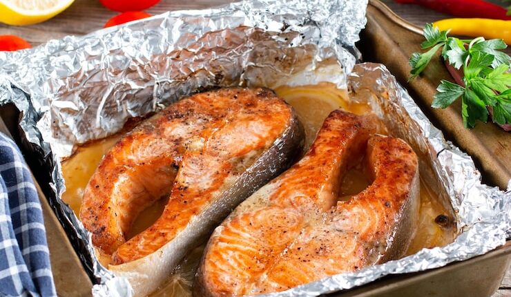 Последний шаг — завернуть рыбу в фольгу. Для этого сложите фольгу в два слоя, чтобы предотвратить протечку сока. Затем положите рыбу на фольгу, добавьте специи и ароматизаторы, и заверните фольгу вокруг рыбы, плотно запечатав ее.