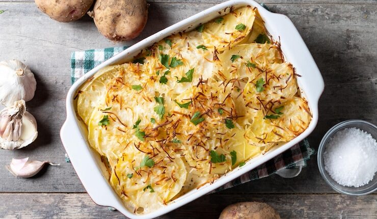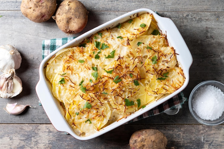 Поставьте форму в духовку и запекайте около 40 минут, или до тех пор, пока картофель не станет мягким, а верх не зарумянится. Подавайте горячим, можно украсить зеленью. Приятного аппетита!