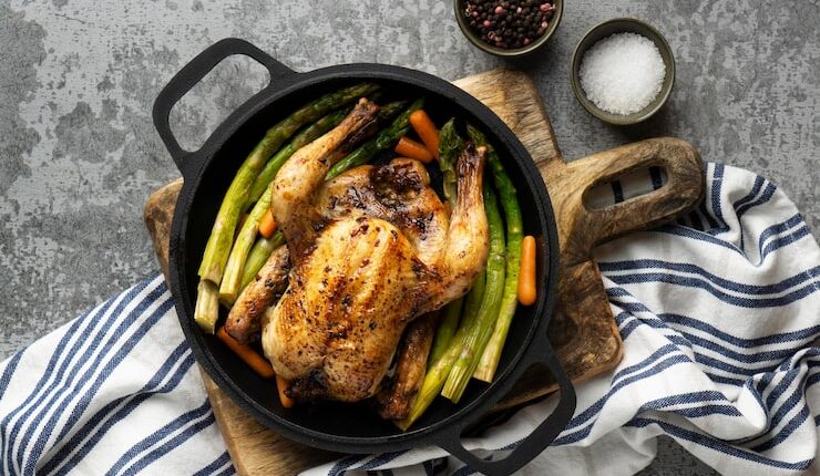 Для лучшего результата, поместите мясо в форму для запекания и добавьте немного жидкости, например, бульона или воды. Это поможет сохранить мясо сочным во время приготовления.