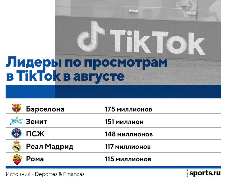 Цифры «Зенита» удивляют не только сами по себе – с начала марта соцсеть ограничила загрузку новых видео российскими аккаунтами. К середине сентября тикток (аккаунт можно вести не из России) остался только у «Зенита», «Динамо» и «Рубина».