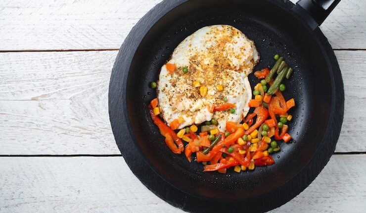 Разогрейте сковороду с антипригарным покрытием на среднем огне. Добавьте немного масла и дайте ему нагреться.