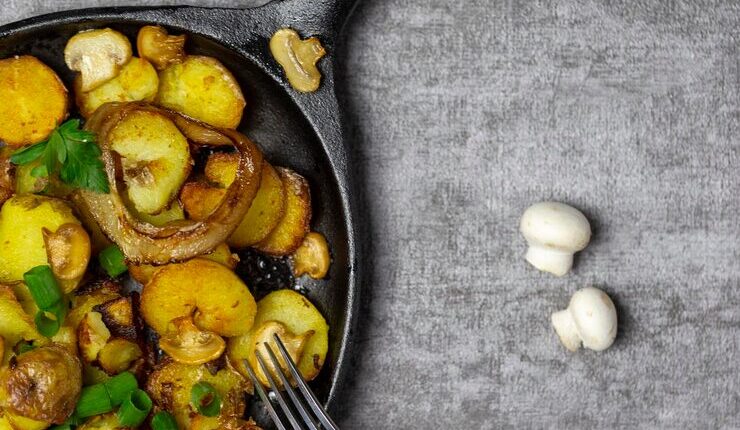 Начните с выбора правильных ингредиентов. Картофель должен быть твердым сорта, а грибы — свежими и ароматными. Очистите картофель и нарежьте его на кусочки, затем обжарьте на среднем огне до золотистого цвета. Добавьте грибы и продолжайте жарить, пока они не станут мягкими и сочными. Приправьте смесь солью, перцем и любимыми специями. Подавайте горячим и наслаждайтесь!